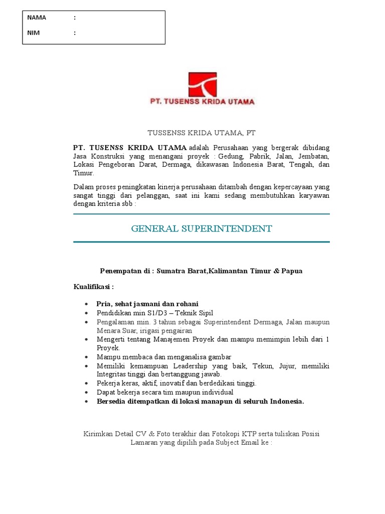 Pendaftaran sekolah (dalam negeri maupun ke luar negeri) pencalonan diri sebagai calon kepala desa, dprd, kepala daerah/bupati. Contoh surat lamaran kerja umum, bank, karyawan, alfamart, pt, sekolahan, formal, fresh graduate, bahasa inggris, via email, tulis surat lamaran kerja adalah surat yang digunakan untuk melakukan permohonan mendapatkan pekerjaan sesuai pengalaman pada perusahaan tertentu. Tribun lampung kanal info loker menyajikan berita seputar info loker. Lowongan kerja pt honda prospect motor 2016. Surat keterangan ahli waris september 2016.
